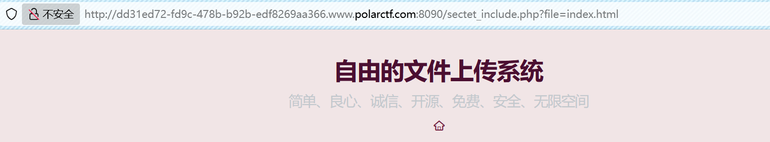 点击那个小房子 会跳转到一个文件包含的页面 所以这题就是要通过文件包含去利用木马